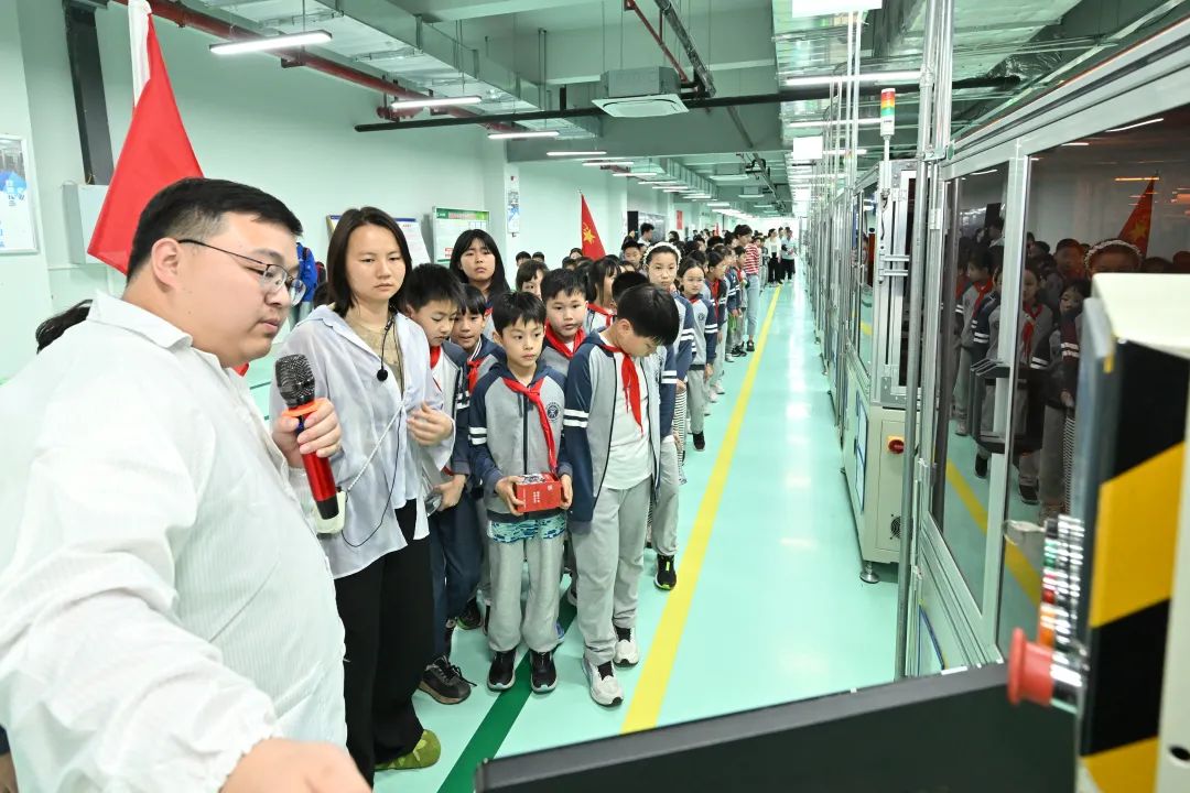 現場科普結束后,學生們依次進入十院航天電器麻花針智能制造車間參觀。