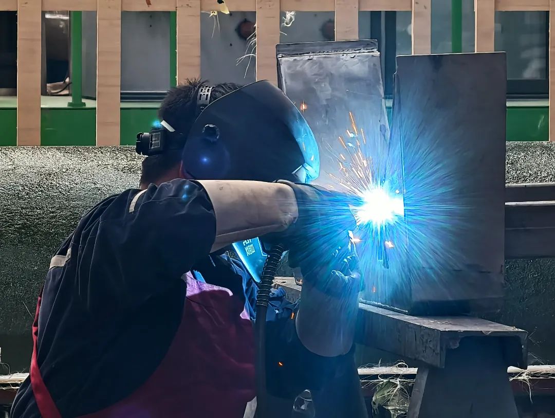 當前,長征公司廠房內,機器轟鳴與高溫疊加,焊槍火花飛濺,焊工師傅全副武裝,化身“鎧甲勇士”,以焊槍作筆,用熱浪為墨,爭分奪秒趕制任務訂單。(圖文/李玲)