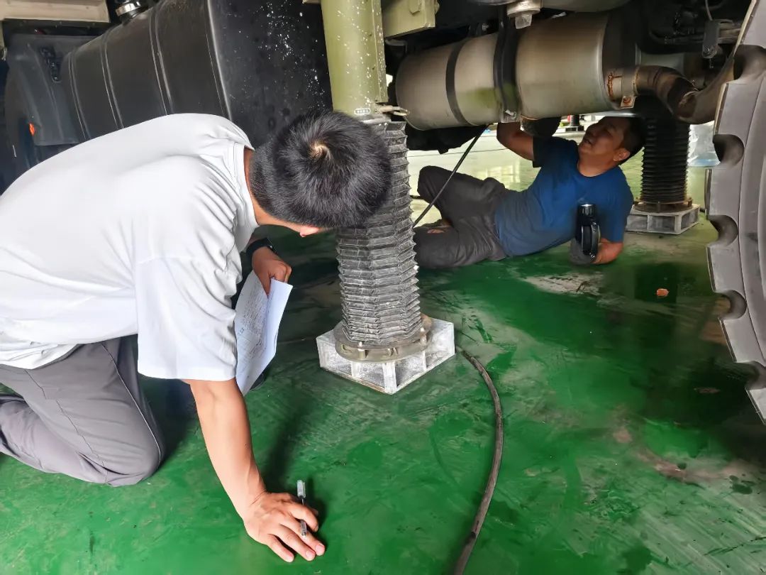 近日,為確保一項目維保工作按標準推進、按時完成,微電院設計師駐守現場。走進車間,設計師細致核查外協操作步驟,全程把控維保質量,有序推進各項工作。圖為設計師與外協人員對底盤進行維保工作。(圖文/張文杰)