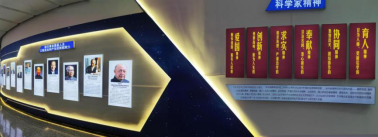 站在山巔遠眺,距離“功勛飛機”不遠處,有一個外形酷似太空艙的圓形建筑,這里便是三院“科學家精神教育基地”的室內展館。