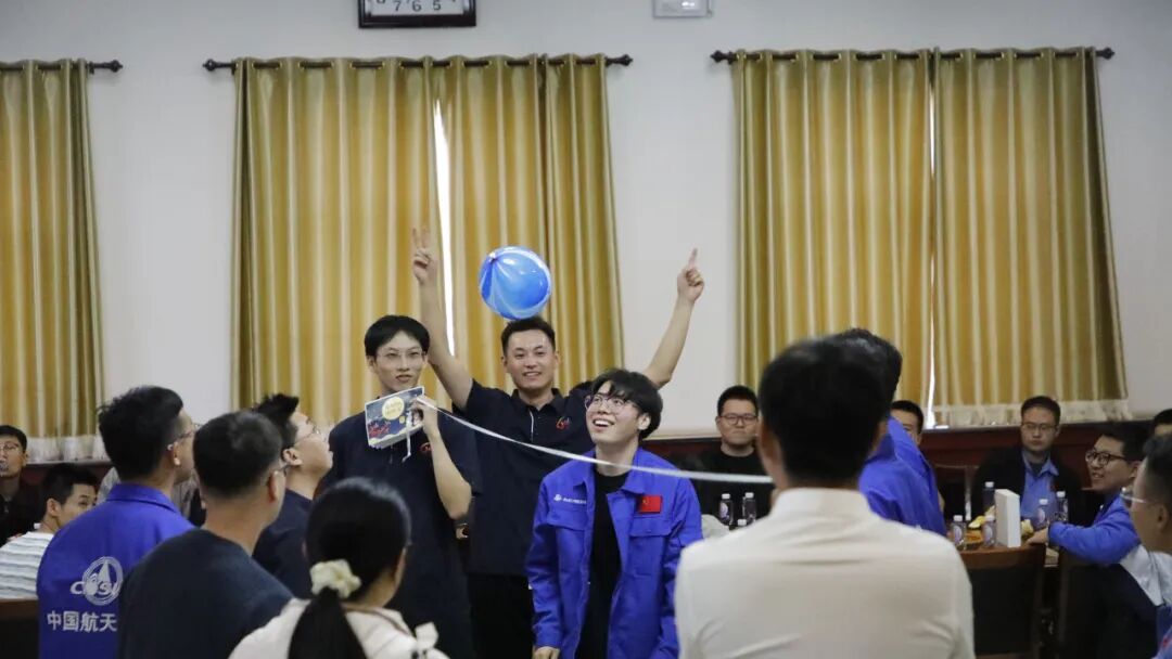 活動現場氛圍熱烈,精彩環節輪番登場。節目表演環節,《野狼 disco》的經典動作引發全場歡笑,《平凡之路》的旋律讓大家沉浸其中,吉他彈唱更帶動臺下跟唱互動;知識問答環節,青年職工踴躍搶答,在競答中積累航天與中秋知識,深化對航天精神的理解;游戲環節將氣氛推向高潮,“齊心協力運乒乓球”展現精準配合,“頭球顛氣球”盡顯團隊默契,“肢體傳詞”的趣味反差讓現場笑聲不斷。