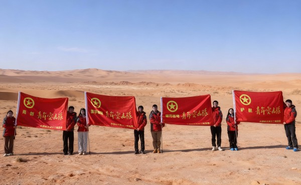 郭大勇在現場為4支青年突擊隊授旗。當青年突擊隊的旗幟飄揚在試驗場,青年們感到使命感在胸膛滾燙。耳畔是整齊響亮的誓言,身邊是并肩而立的伙伴,年輕的面龐充滿堅毅。戈壁的夕陽為獵獵旌旗鍍上金邊,青年的誓言與曠野的風聲交織共鳴。旗幟不僅承載著信任與期望,更點燃了青年沖鋒的斗志。