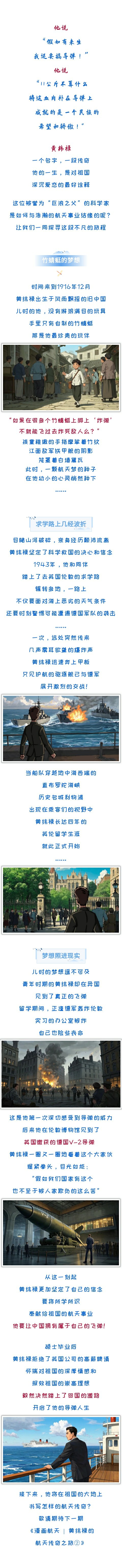 一代人有一代人的奮斗,一個時代有一個時代的使命。不朽的航天精神早已融入航天人的血脈中,穿越時空、傳承至今......每一代航天人都以自己的方式,書寫關(guān)于探索、勇氣、夢想與堅(jiān)持的故事。航天科工四院官微推出“漫畫航天”系列推文,通過漫畫的形式,講述他們關(guān)于航天的故事。本期,讓我們走進(jìn)《漫畫航天 | 黃緯祿的航天傳奇之旅①》。
