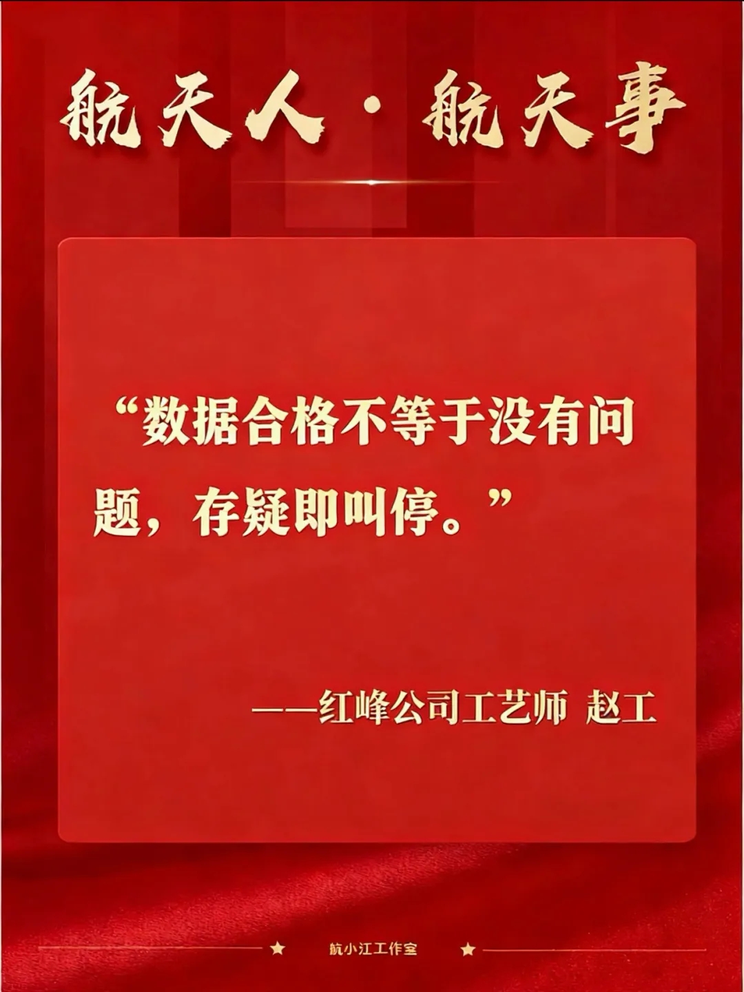 他就是航天科工九院紅峰公司副主任工藝師趙工。沒有絲毫猶豫,更不懼承擔壓力,他以專業(yè)的研判和果斷的行動守住質(zhì)量防線。在他看來:“數(shù)據(jù)合格不等于沒有問題,存疑即叫停。”